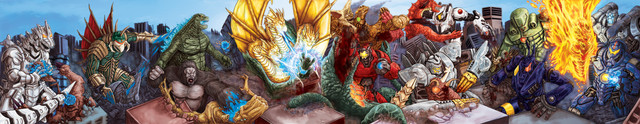 Who's that between Astro Delta Megazord and Omega Supreme, Titan Megazord? Who is the one by the Shogon Megazord that got shot down dy Superion (Oh wait, that's Abominus, never mind.)? And what are those pink and green things by Turbo Megazord's head and the right fist of Defensor?