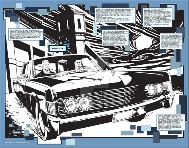 This art is bad ass. I really dig the references to previous Knight Rider elements like the two K.I.T.T.'s and K.A.R.R. (under careful laser surveillance) behind glass in storage, shot of Goliath, and the costumes. The tire treads and handrails are another nice touch. Very "K.I.T.T. cave" and KRCompanion approved!