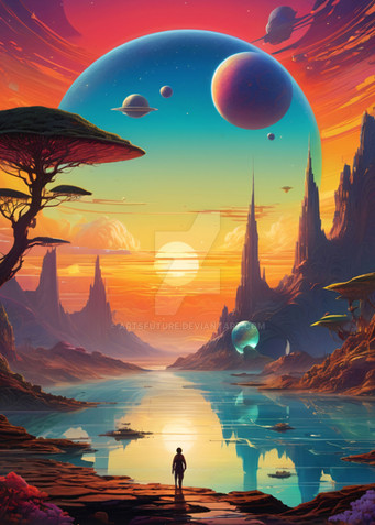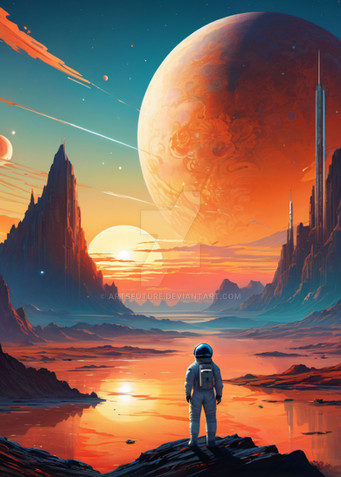 #alien #city #future #nature #painting #planet #space #stars #universe #aiart #cityscape #futuristic #illustration #landscape #mountains #mountainscape #retrofuturism #retrofuturistic
