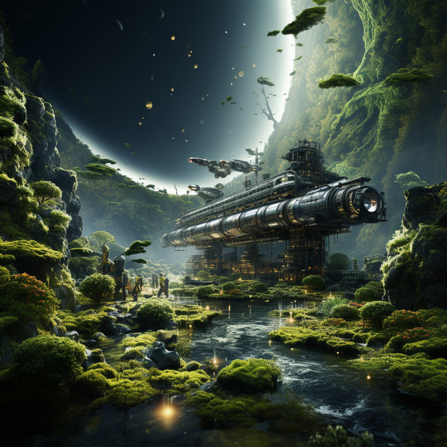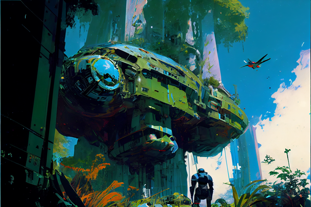 #architecture #building #city #cityscape #flying #forest #future #futuristic #green #human #nature #plant #robot #spaceship #spacetravel #travel #trees #aiart