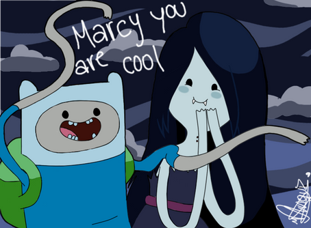 I really like the shading . This almost looks like a screenshot that came from the show !This is one of the best ADVENTURE TIME fan arts that I had ever seen before ! It is so realistic ! I hope you have more crituques . I think you could improve on the curls of Marce's hair . I am not trying to be rude though ! The curls really look wicked and twisted ! I just hope many people will favorite this !!! I hope alot of people enjoy this . You took alot of time and effort . You deserve alot of comments and many favorites ! Good luck !