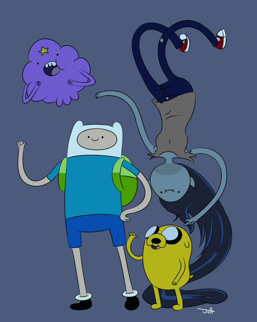 I really enjoy watching Marceline, Jake and Finn just having a good time, listening to a tune, dancing and just having fun. They could be listening to "Daddy Ate My Fries" "Tooting Baby Finn" or "Auto Tune Baby Song".Illustrated with Adobe Illustrator