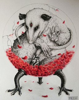 Back in 2016, I used to do a lot of dot work miniatures. I don't have that much patience anymore, so I prefer hatching.10x10cm, gel pen, 2016