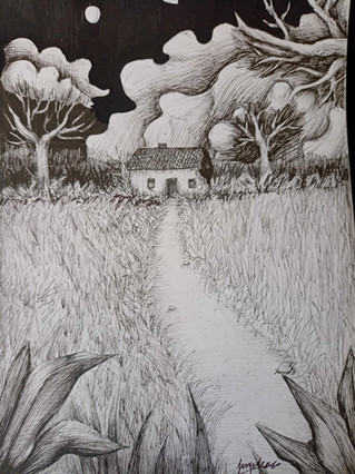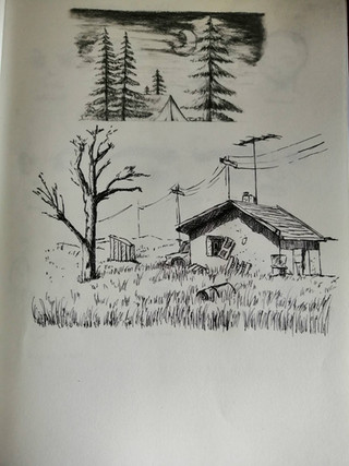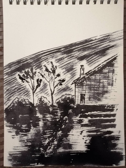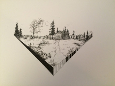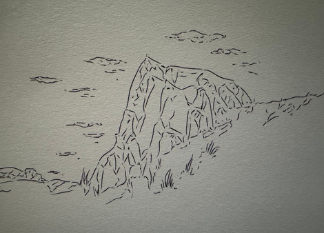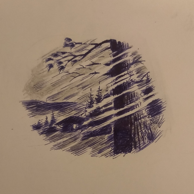 Drawing of landscape and architecture in pen.Related content