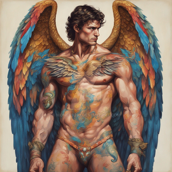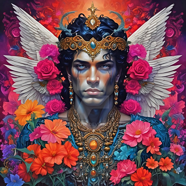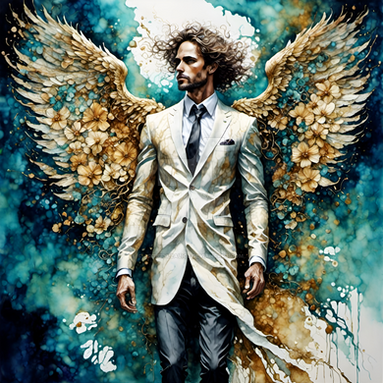 #ai #angel #archangel #bible #digitalpainting #fantasy #floral #heaven #ink #male #portrait #raphael #watercolorpainting #wings #dripping
