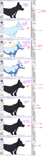 UPDATE: 7/25/2014 - good lord this is OOOLD. Perhaps someday I can update it with a more recent tutorial, as this is incredibly outdated and I've since learned a lot of new shortcuts and easier methods. One of which is called a CLIPPING MASK in Photoshop, which I encourage you all to use like crazy (because it's fantastic and a HUUUGE time saver - if you want to access it, right click one of the layers and simply select clipping mask. It instantly only colors what the layer beneath it has colored. For example, after throwing down a base layer of color, make a new layer above it and select clipping mask to only color what is colored in the base color layer. Give it a try!).