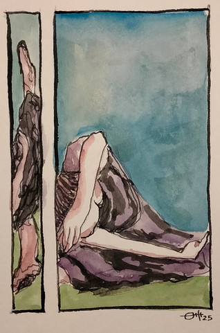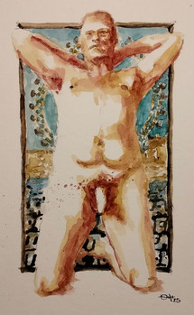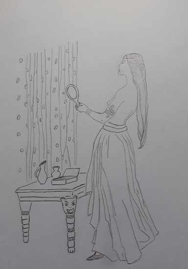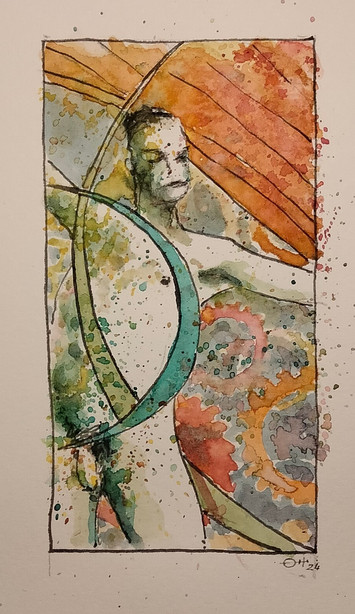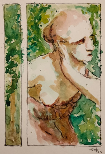 Thursday #PortraitChallenge #watercolour and #InkDrawing of ‘Stitching the Standard’, painted in oils on canvas by Edmund Blair Leighton in 1911Thank you @StudioTeaBreak
