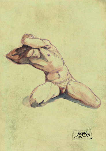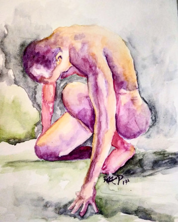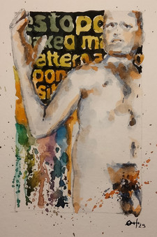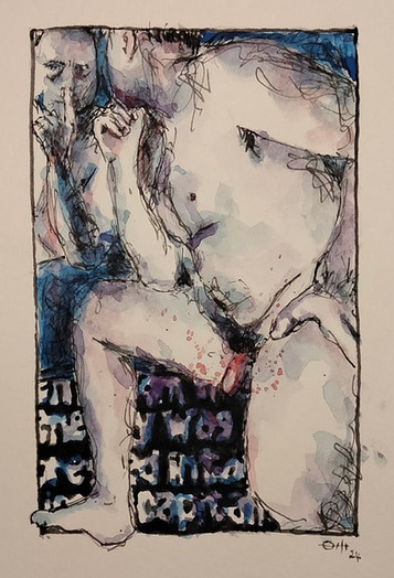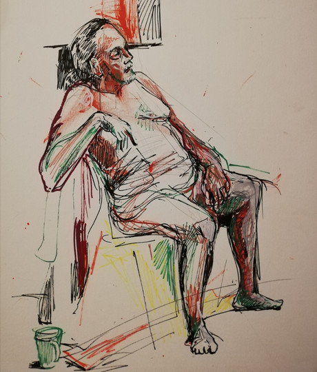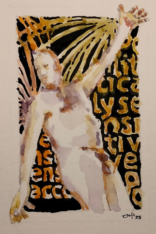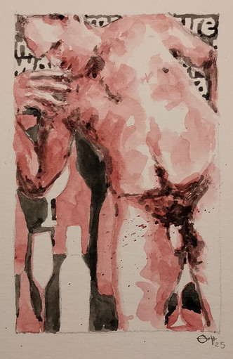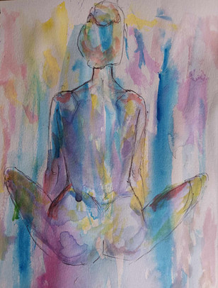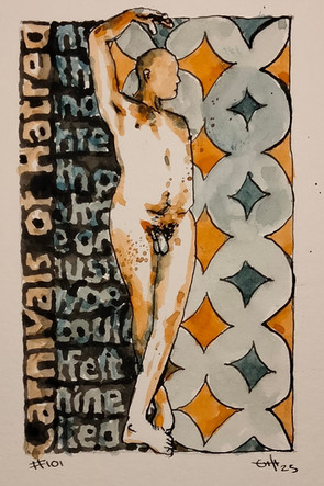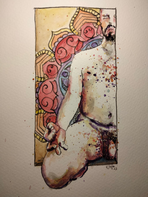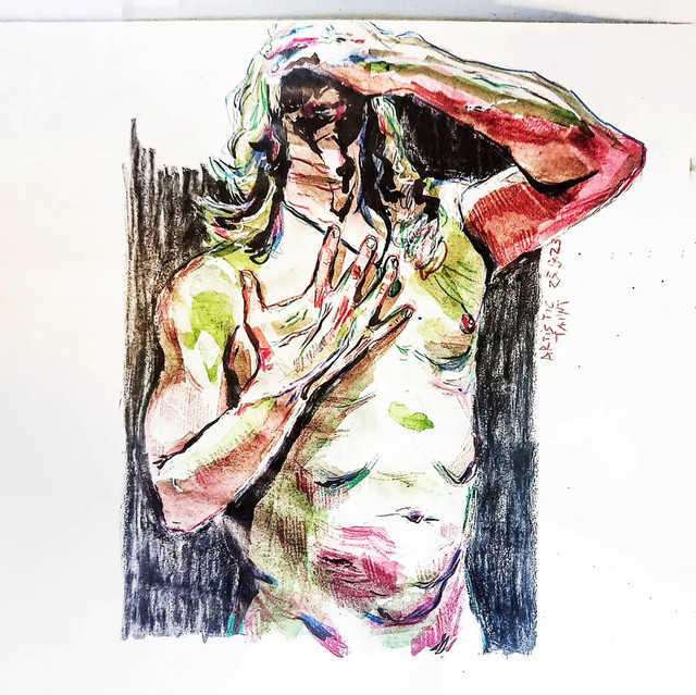 #thedailysketch #watercolour and #inkdrawing of a #nudefigure with a colourful background