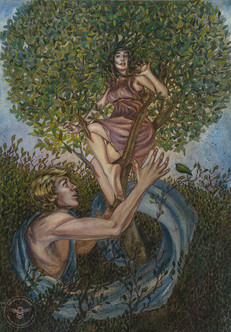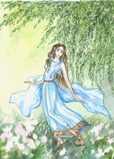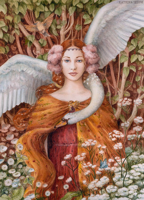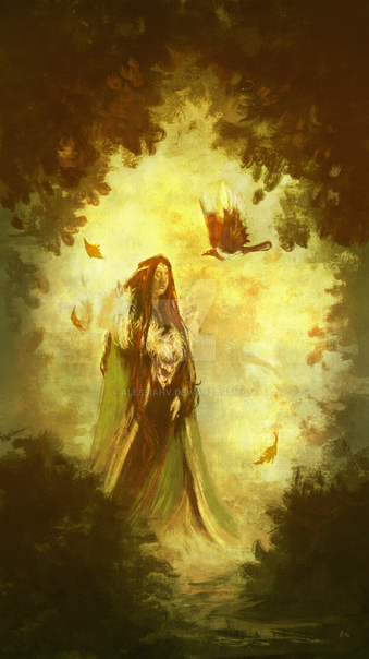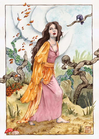 A birch nymph receives a message from Winter's Raven as she surveys her autumnal domain.Medium - Watercolor and Gouache on 300gsm watercolor paper