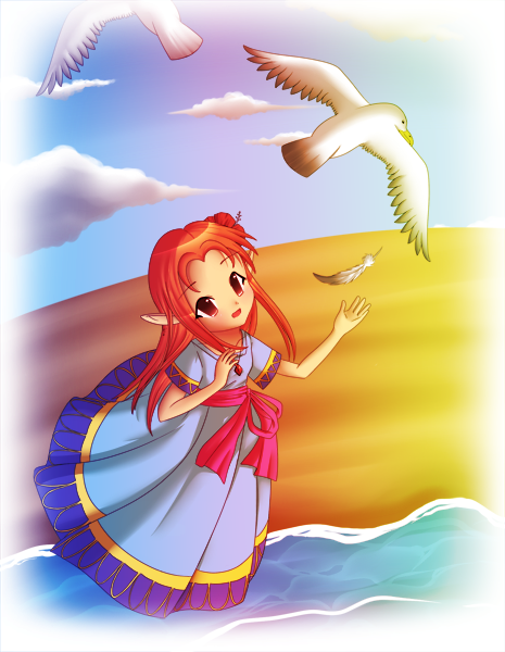 Marin from The Legend of Zelda: Link's Awakening.Practiced water again, and clouds.