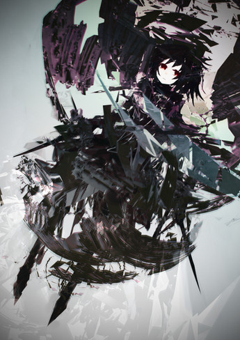 I love how you've coloured it in mostly greys, it gives it a kind of more mild atmosphere to it. I also like how you've drawn the hair, it kind of blends in with the background.