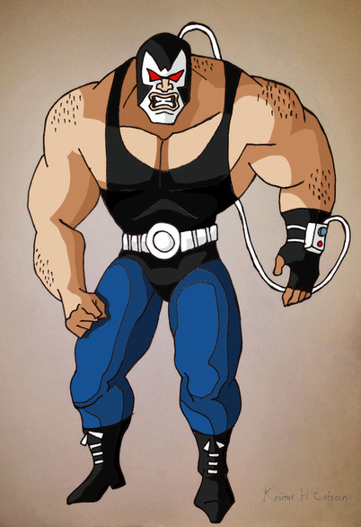 Bane's designs for Batman The Animated Series were a weak point. The designs err on the side of straight-up luchador costuming and, later, fetish. Bane never looked big, but more top heavy, like Johnny Bravo. I opted to redesign this character in the style of the show, but more in keeping with the original Graham Nolan design.Related content