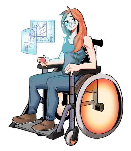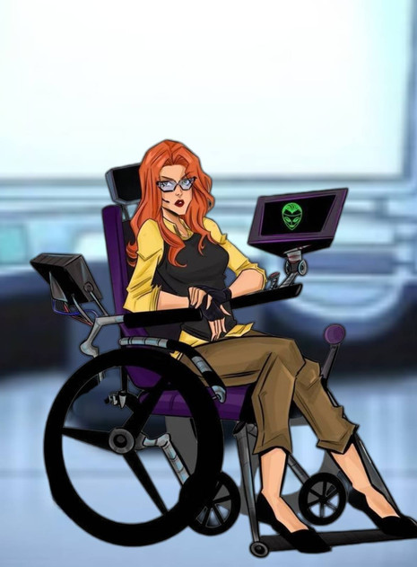 I have my own wheelchair-bound character myself. He's a computer nut who has his own laptop and works with the team's super-computer at HQ.