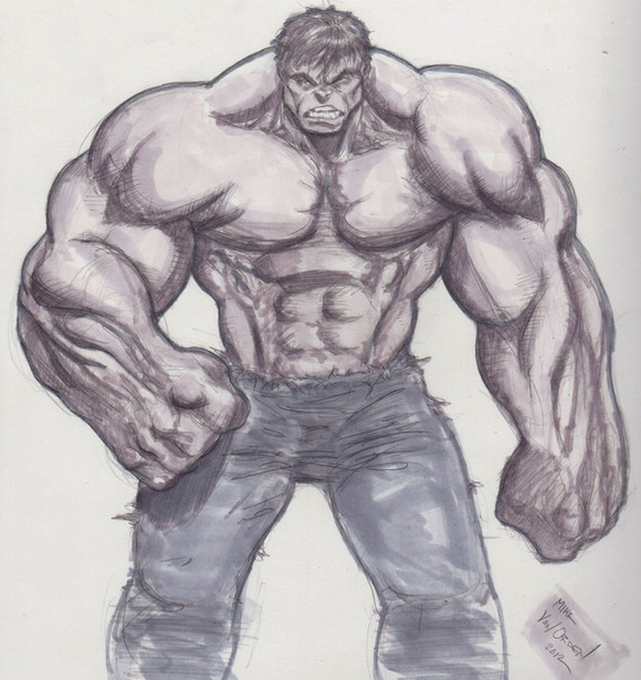 We had to do a line drawing of the Hulk this week for homework. He had to be heavily exaggerated. This is what i came up with.PhotoshopCS3: 4 hours give or take