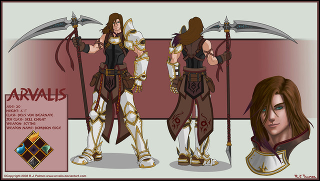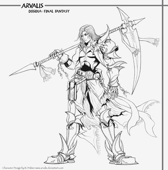 So yeah i finished this one finally, kinda took forever, kinda worked on it for the last 14 hours straight. I hope you guys dig this, i worked a lot on it.Yeah so if you arent aware, this is my own original character, Arvalis, whom you can find many pictures of in my gallery, done in the art style of Dissidia: Final Fantasy. It was pretty freakin hard to do, especially the lines, but overall i feel i have learned a great deal from it, and the project was worth doing. I would love to see you guys try to do the same thing with one of your original characters. Here is a link to all the Dissidia artworks: [link]