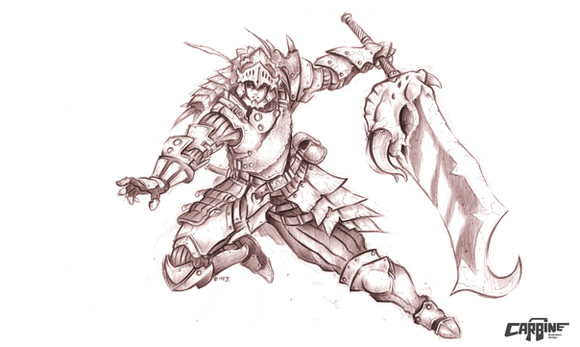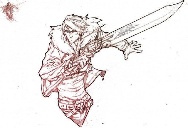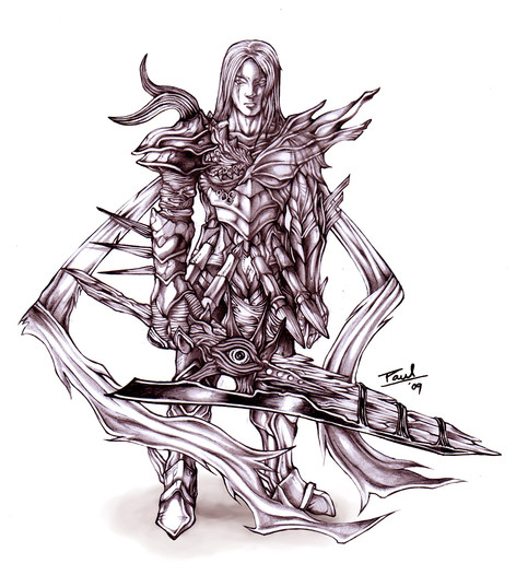 I love everything about this! Its freeking awesome sausce DX The flowy hair the insanly wicked armour design the weapon scraf warmers XD the llittle miniscule details that really make it shine 8D Its aboslutly awesome...maybe i should give it a try to see if it gets me back into drawing...cant wait to see it in colour.........also, sup? havent seen yah inna long long time