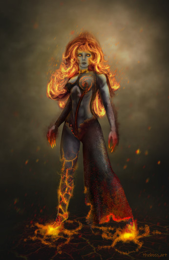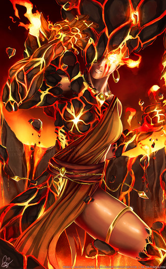 She's terribly beautiful and amazingly powerful. This piece really is gorgeous. I really like how you sort of captured her using her powers, in the middle of a active volcano no less. I can't wait for the rest!