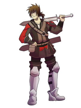 I notice he has a watch. What time period are you placeing this in or are you kind of doing the FF VII thing where you have modern technology with a splash of olde world in it? His coloring look alot like your avatar's which seems fitting since you said you based him off you. Looks like a city dweller to me, particuallry an industrial town of some sort, probally a city of steel mills and textile plants. If you are going for a comic, i say give it your all. You have the ability and its definatly one i would read.