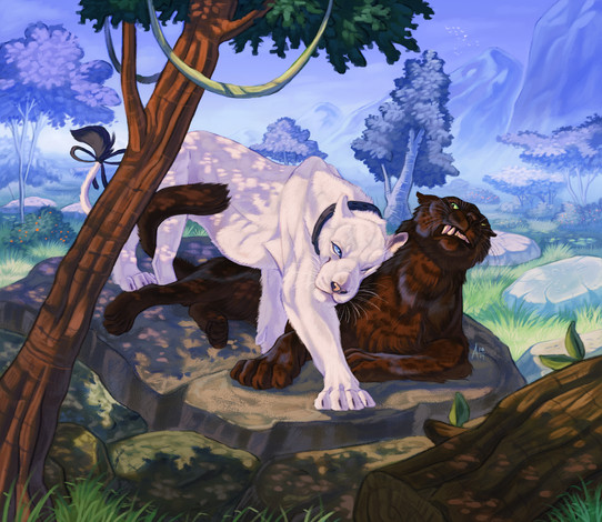 Ah, no, they are both African leopards, not cheetahs, and they are naturally rather muscular and bulky But thanks for the suggestion about cheetahs, I'll keep that in mind to make my cheetah character