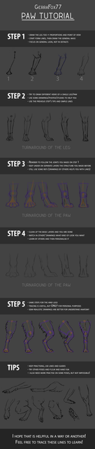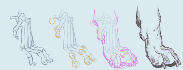 Because many of the steps are essentially the same as the previous tutorial, I have focused on the anatomy of the paws in various animals, as well as a note on anthropomorphic digitigrade characters!