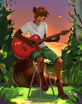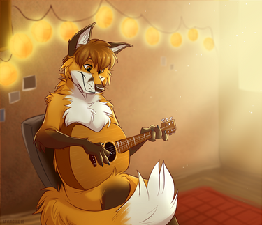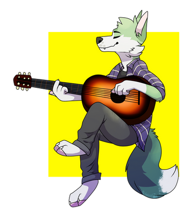 #artist #artwork #canine #colorful #cute #fluffy #fullbody #furry #furryart #fursona #guitar #happy #notes #play #scene #strings #wolf #furrydrawing #art #furry_commission