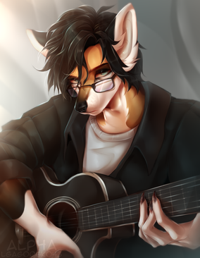 Fullshaded piece for Kaori the foxFor the first time it’s not me who plays on the guitar! Hehe ;3