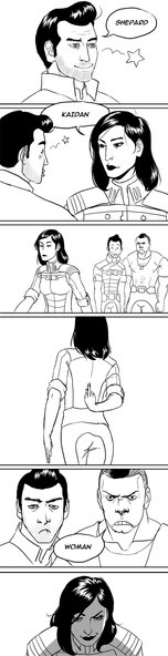 it's about similarity? i just drew some strips about female version of my femshep, they are millions you know... and it was more than year ago. if it insults your feelings, than i'm sorry, it,s accidentally.