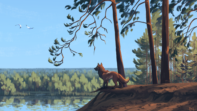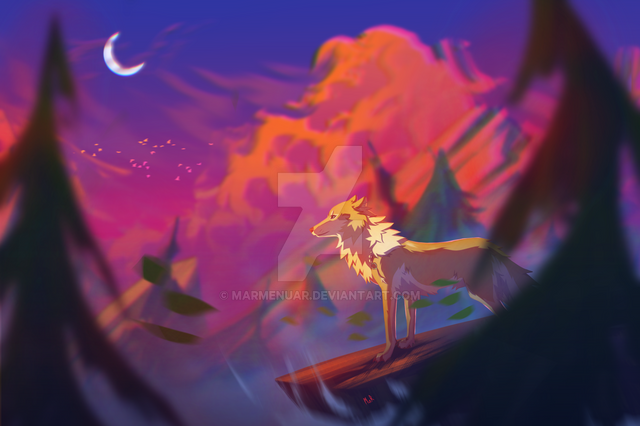 A redo of a piece I did a loong time ago! Switched up the characters, too, though you can't really tell based on silhouette alone haha! I've been meaning to paint this scene over again and finally got around to it the other week. Over all, I'm pleased with how it turned out!Original:
