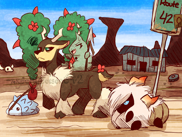 Commission of ARlZONATEA 's adorable beans, Koda, Mai and Aria having a lovely day on their ranch! I had a lot of fun with the scenery on this one. Thanks again for the commission, I'm glad you like how it turned out! View full size for best results.Characters belong to ARIZONATEA