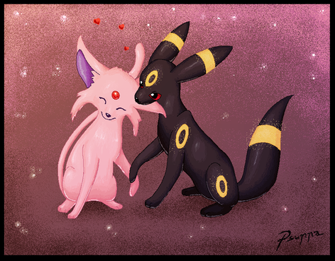 Umbreon's blushing!That is absolutely adorable since both of them are my fave eeveelutions.