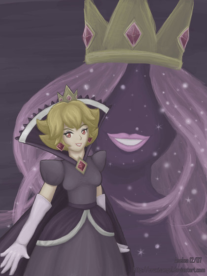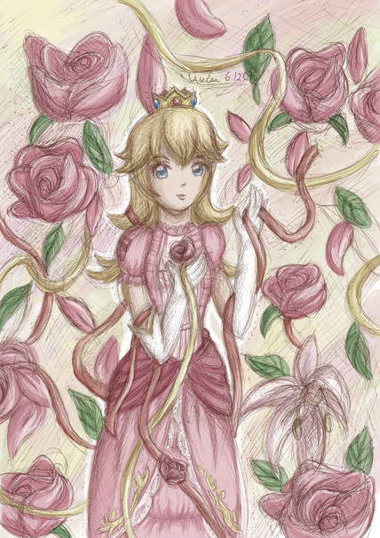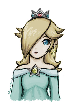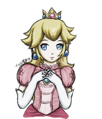 Since I like drawing detailed stuff, I changed her dress and made the design similar to Peach's Brawl dress. I could imagine her looking something like this if she'd be in Brawl, because if she is, she'll propably just be an alternate costume of Peach's again.