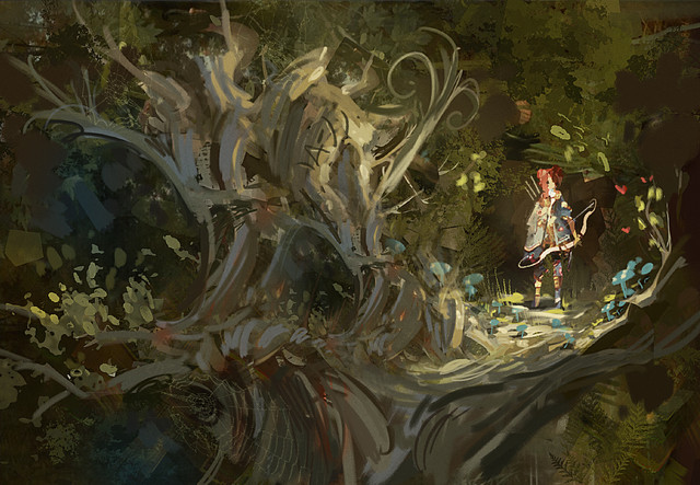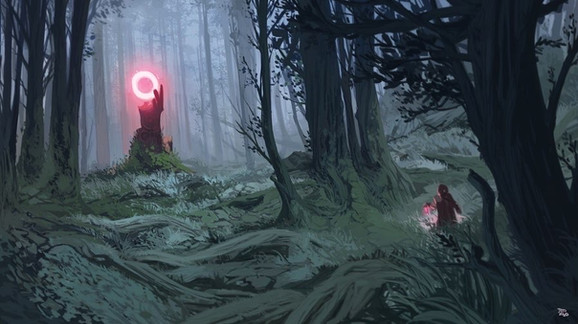 #cave #growth #magic #nature #scenery #tree #cloak #girl #red #sorceress