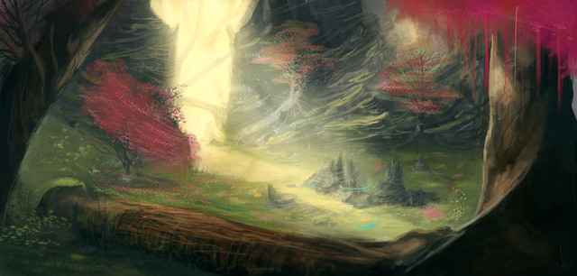 He opened his eyes to find himself half in water, a true relief for him, and was surprised to see that he was no longer in a cave, but in a field covered in flowers. He was truly standing in a pool located somewhere in the middle. He rose himself to a standing position with his staff by his sides and took in the surroundings.