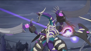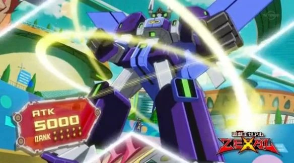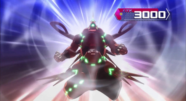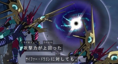 Shun makes the Xyz Summoning of his "RaidRaptor - Rise Falcon". He activates the effect of "Rise Falcon" by detaching an Overlay Unit to increase its ATK equal to the ATK of "Double Ancient Gear Hunting Hound".From Arc-V 109