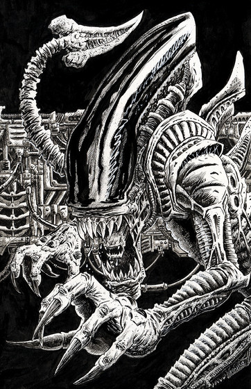 Your inking style is magnificent. It reminds me very much of the early Aliens vs Predator comics. Beautiful, ghastly work!