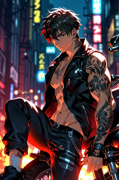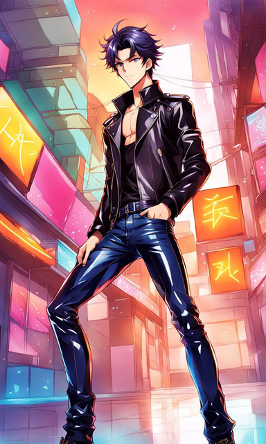 #anime #digitalart #malecharacter #originalcharacter #characterdesign #digitalpainting #cityscape #confident #leatherjacket #male #muscles