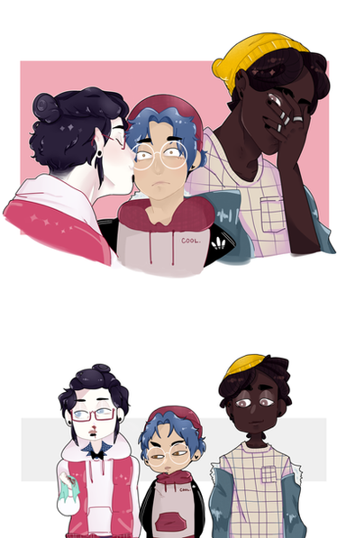 Here we have my oc kpop group Monstar I'll do bios on them all at some point but for now I'll give you a idea on who they are the Blonde is Bojing he is the tallest and one of the rappers of the group he's chinese and considered by fans and the group as Mama Bojing he makes sure everyone's feed, hydrated and carries bandaids the guy in red next to Bojing is Kiet he's Thai and known as the group's speaker in international/out of country inviews he can speak the most languages 6 to be exact the other Black haired boy is Jae Hyun he's korean and the leader of the group out of everyone he's the worst at language he can only speak korean and bit and pieces of couple others being stuff he heard the other members say outside of music though he's the most athletic now the blue hair guy is Icee (real name Dae Hyun) he is Jae's twin brother like Jea he's Korean besides singing he can also play violin, piano, and bass guitar he is known as the groups sweetie is a known fact that he loves anything sweet and last but not least we have the hatted Storm (real name Xander)he is japanese american and the shortest and the other rapper of the group he's very fun loving and is very accident prone he is the reason Bojing carries band aids he's basicly the child of the groupnow that's out of the way I will be posting another one with their signatures and logo as well with a bit of story of why they are having such a plan picture for a fan signing