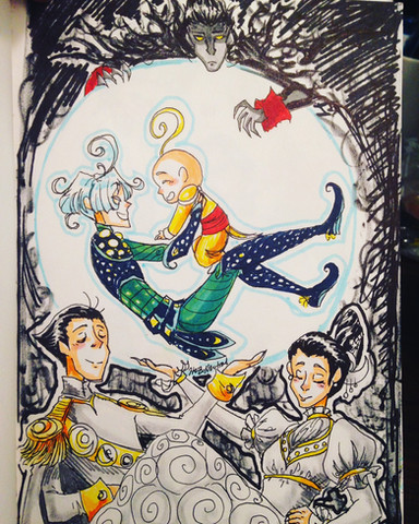 This is so gorgeous! All of the colors are so beautiful. I find it interesting that Disbelief and Jareth are the only ones with their backs to us, but we can see everyone else's faces. Β