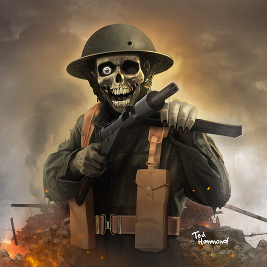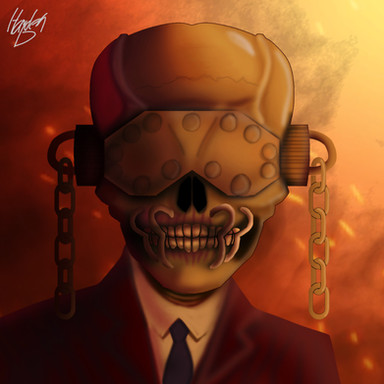 XD Nah man. I do know what you’re thinking of tho. That’s a skeleton pilot from the music video. This guy is Megadeth’s mascot. His name Is Vic Rattlehead. He symbolizes “see no evil, hear no evil, speak no evil.”