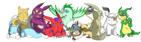 Drawing in Digimon Style makes me feel more appreciative of my drawings.All the main Digimon partners for the tamers.