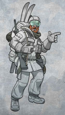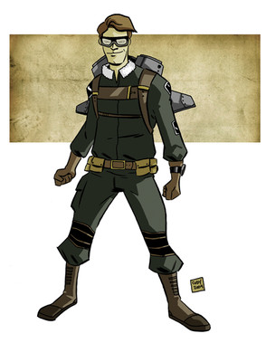 Raymond Hawkins Jr., good with a gun and even better with the dames. Yessir, this good ol' boy outta the Free Republic Of Texas'd just as soon break a heart as put a bullet in it. Always up for a tussle, if he can't talk his way out of it, his twin Mausers'll do the talkin' for him. They've got him in and out of more trouble than most can handle, that's for sure. A war hero of sorts, Hawk's the sole survivor of his Rocket Ranger unit, "Steven's Silverhawks." And if there's any question as to how he managed that or any doubt of his courage, you take a look at them scars he's got markin' up his skinny frame, or watch him fly like a bat outta hell with that rocketpack, an' you tell me they don't make'em tougher down in the Lone Star! Shoot y'ask me, ol' Jack's lucky to call this one one of his boys, cuz everybody knows, you want a job done right and fast you call Hawk.