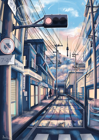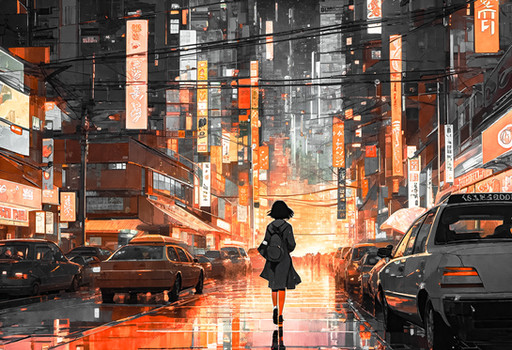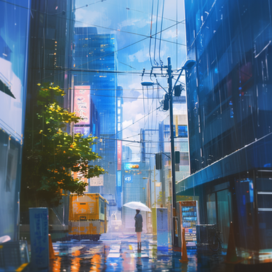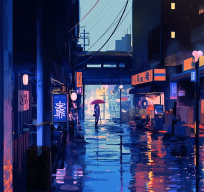 "Alone" is a captivating painting that depicts a solitary girl standing amidst a Tokyo street on a rainy night, illuminated by the soft glow of the city lights. The scene is dominated by a mesmerizing blue full moon in the sky, casting an ethereal aura over the rain-soaked cityscape. The artist skillfully captures the delicate droplets falling from the sky and the reflections of neon signs on wet surfaces, creating a shimmering and dreamlike atmosphere. Through this poignant portrayal, "Alone" invites viewers to contemplate the girl's solitude, resilience, and the profound connection between humanity and the natural world, evoking a sense of melancholic beauty that lingers in the mind.
