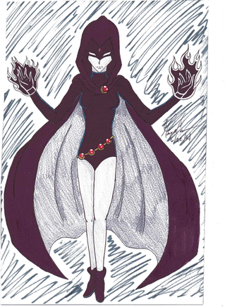 >/ My scanner seriously hates me. I spent a freaking LONG time on this, re-inked and touchup-ed about three times, and spent from about 9pm to 2:30am Saturday and 1pm to 7:10pm on Sunday working on it, and the scan looks awful. ;_; But, my god, I have to be the biggest loser on the planet. The only times I took breaks from drawing today and yesterday was to watch Teen Titans. O_O;; I swear, this is the most ADDICTING show I've even had the misfortune of watching. x___x It's so cheesy but I can't stop watching! I crave it! OMDSGHfadnjgg4ewt543Other than that, I totally looooooove Raven's design~