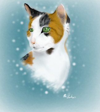 [Edit: Added details and changed some stuff and I think it looks a little better (definitely wasn't satisfied before). It took a week because I ended up being gone all weekend. Anyway I hope it looks a little better to someone else's eyes too.]Aaaahh this one was hard. @_@ I've never drawn a tortie before - I have two calicos so I get confused, and also painting two colours so close together without actually mixing is complicated.