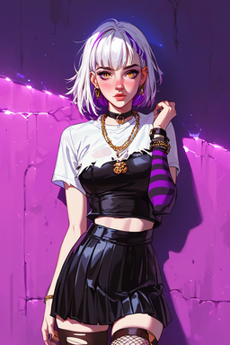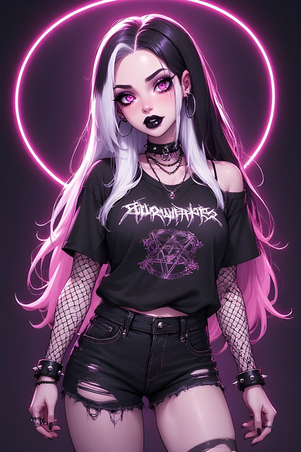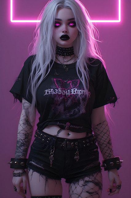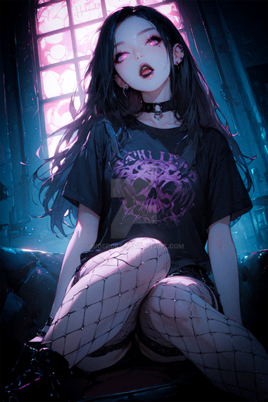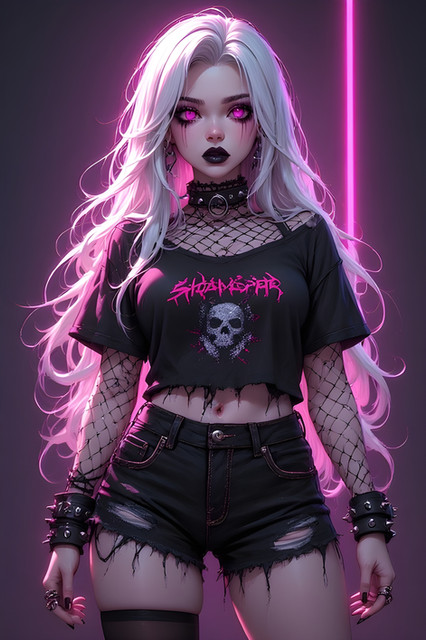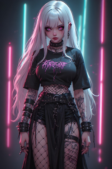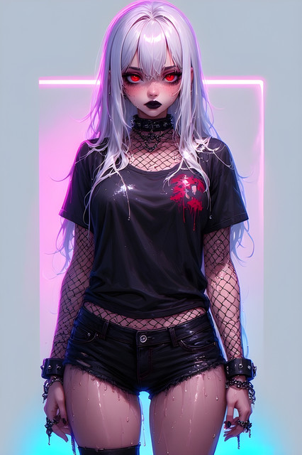 #gothic #anime #portrait #beauty #animegirl #choker #fishnet #glow #goth #gothgirl #neon #redeyes #vampiregirl #whitehair