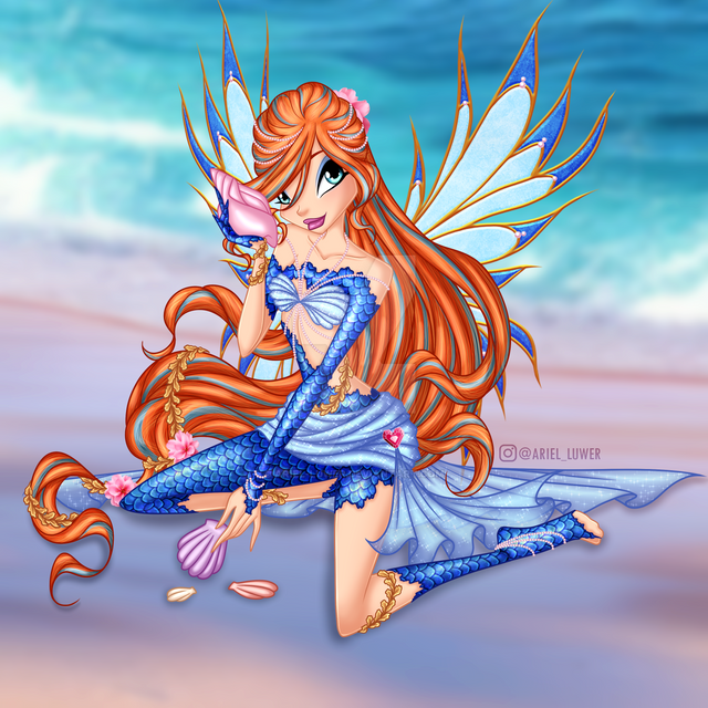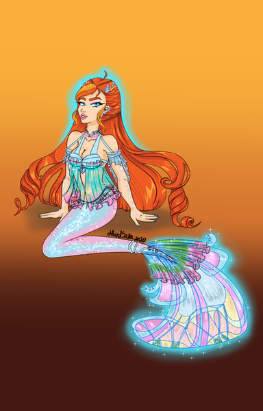 Happy Samhain/Halloween everyone! So I lovee winx club and I like many other fans love the enchantix arcs and I wish the later forms were extensions of enchantix so with that in mind I thought wouldn’t it be cool if Sirenix actually turned the girls into sirenas? So i combined elements of both Enchantix and Sirenix for these designs. Bloom was my favorite, I loved her firey red hair and blue looks. Used her enchantix wings for her tail design (hint I did this for all of them) and I kind of combined her enchantix and sirenix hair for the hairstyle.Related content