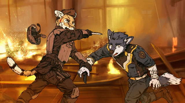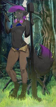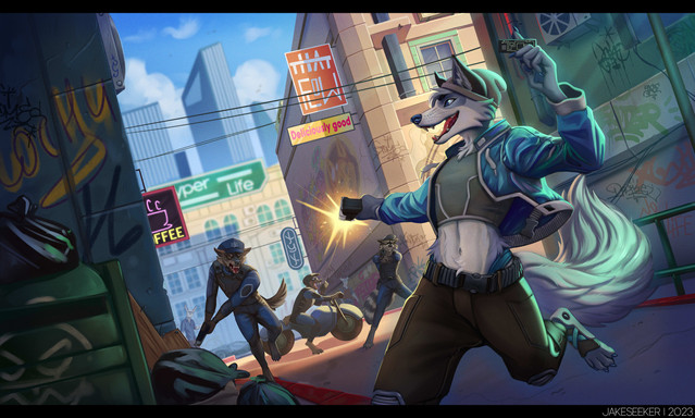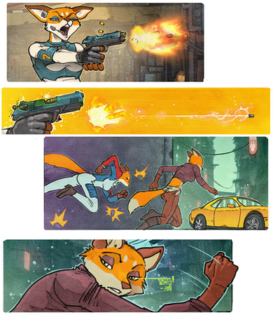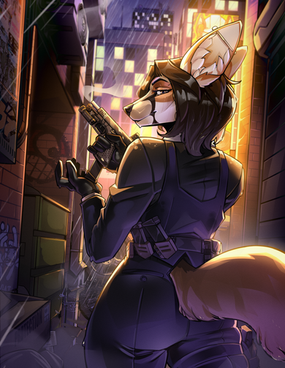 It was a lot of fun! Gave me freedom to make whatever kind of scene I wanted, they mentioned two guns they loved, so I included one holstered and the other more crazy scifi one shooting some poor bloke in the chest lol