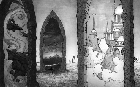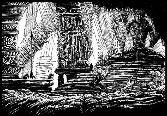 #fantasy #ancient #ancientcity #ancientcivilization #blackandwhite #fantasycity #fantasyillustration #fantasylandscape #ink #pendrawing #ruins #statue #undergroundcity