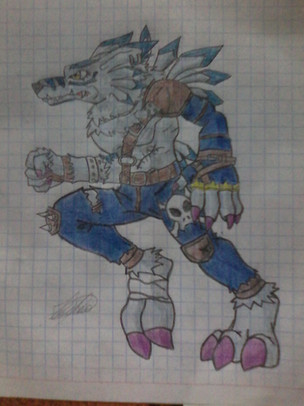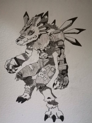 the drawing of weregarurumon came out you spectacular , very nice drawing!