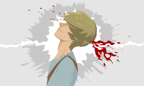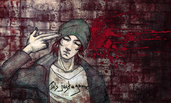 Wow, awesome. I love how you splashed the blood behind his head to give it that realistic feel. You capture his expression perfectly too of pure defeat just by the look in his eyes. Great work!